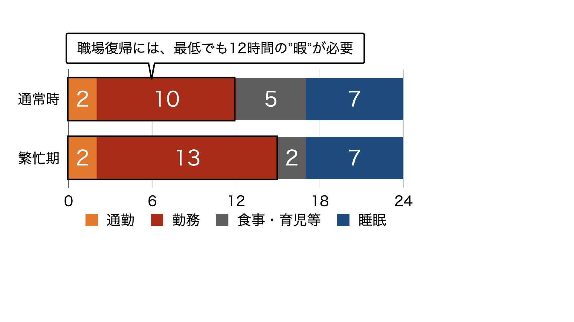 A: 通勤・業務全て合わせた労働に必要な時間 が