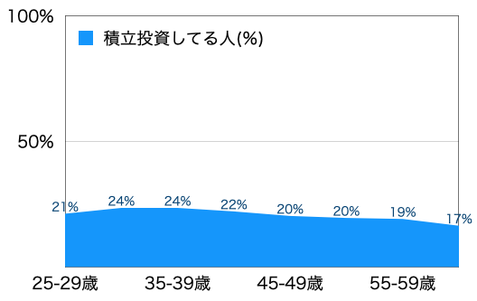 全世代平均と同じく、20%の人が積立投資をしているようです。