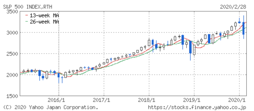 2020/3/1時点での、S&P500の5年チャートを調べてみました。
