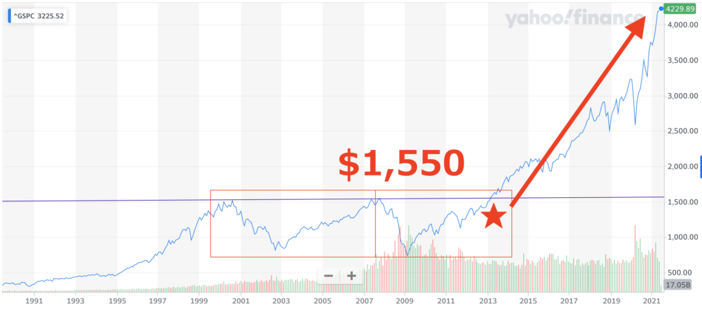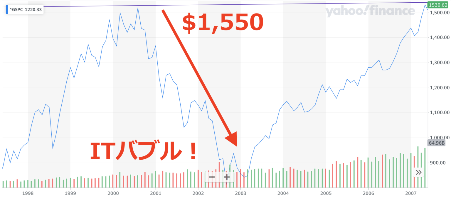 ITバブルでは$1,550付近で株価が崩壊しました。
