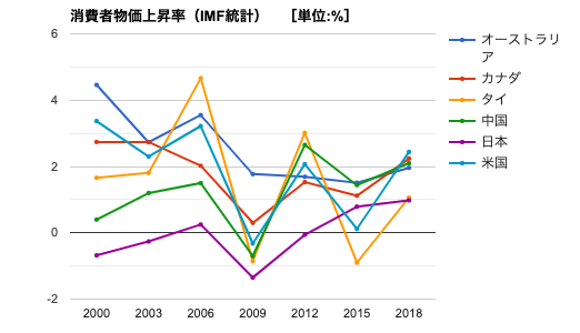 2000年以降のインフレ率の推移を、代表的な国と比較してみます。