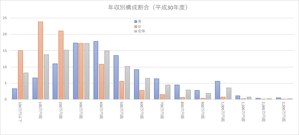 いずれにせよ、給与収入1,000万円には小学校のクラスに1,2人程度しか到達できないという事実がわかります。