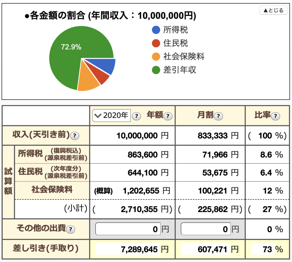 このように、所得税・住民税・社会保険料を合わせて271万円も天引きされてしまいます。手元に残るお金は729万円のみです。