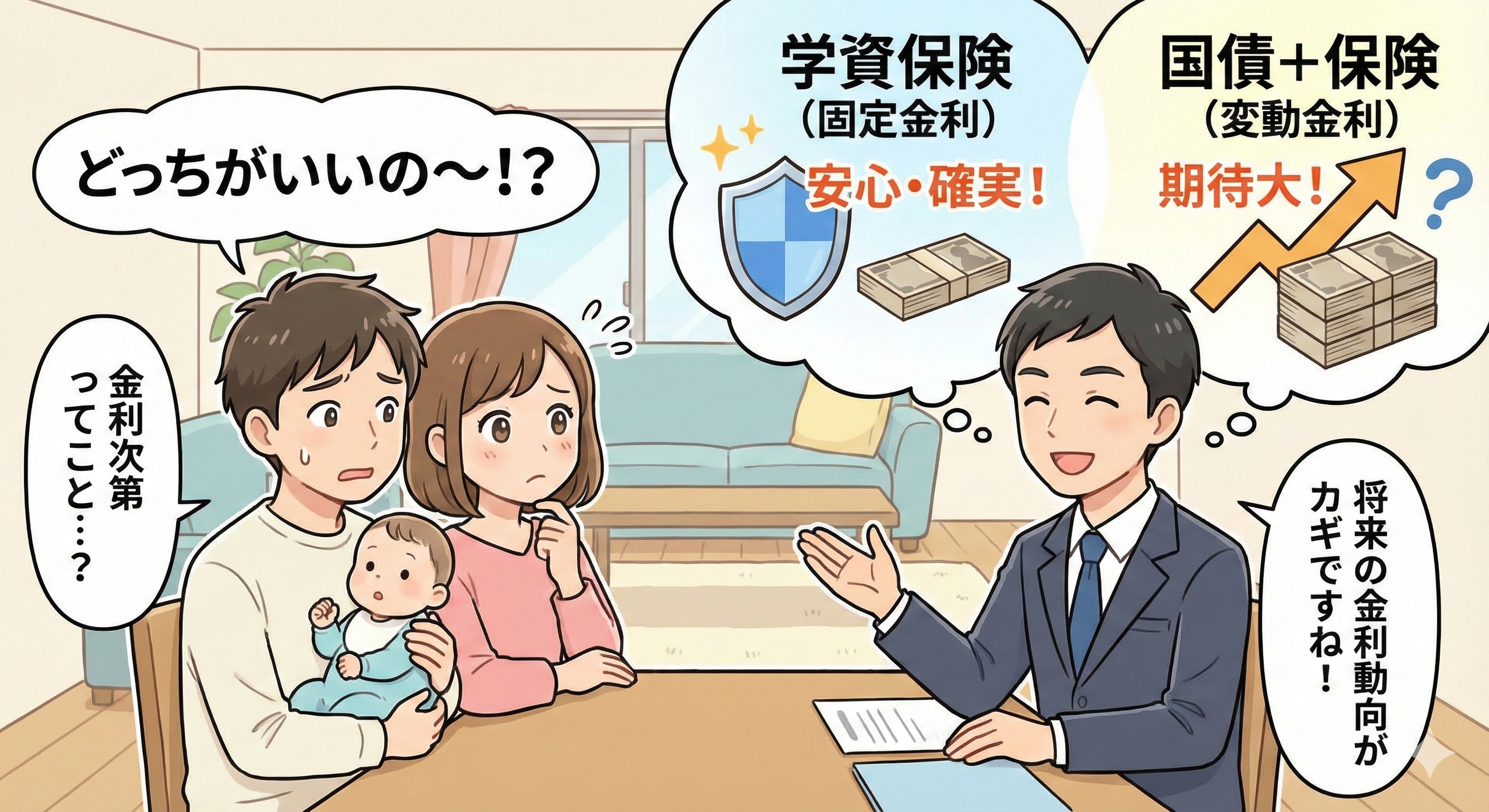 現在の金利水準が続く、あるいは上昇すると考えるならば、「分解プラン(国債+保険)」は非常に合理的な選択肢となります。一方で、将来的な金利低下リスクをヘッジしたい場合は、学資保険の固定金利が魅力的です。
