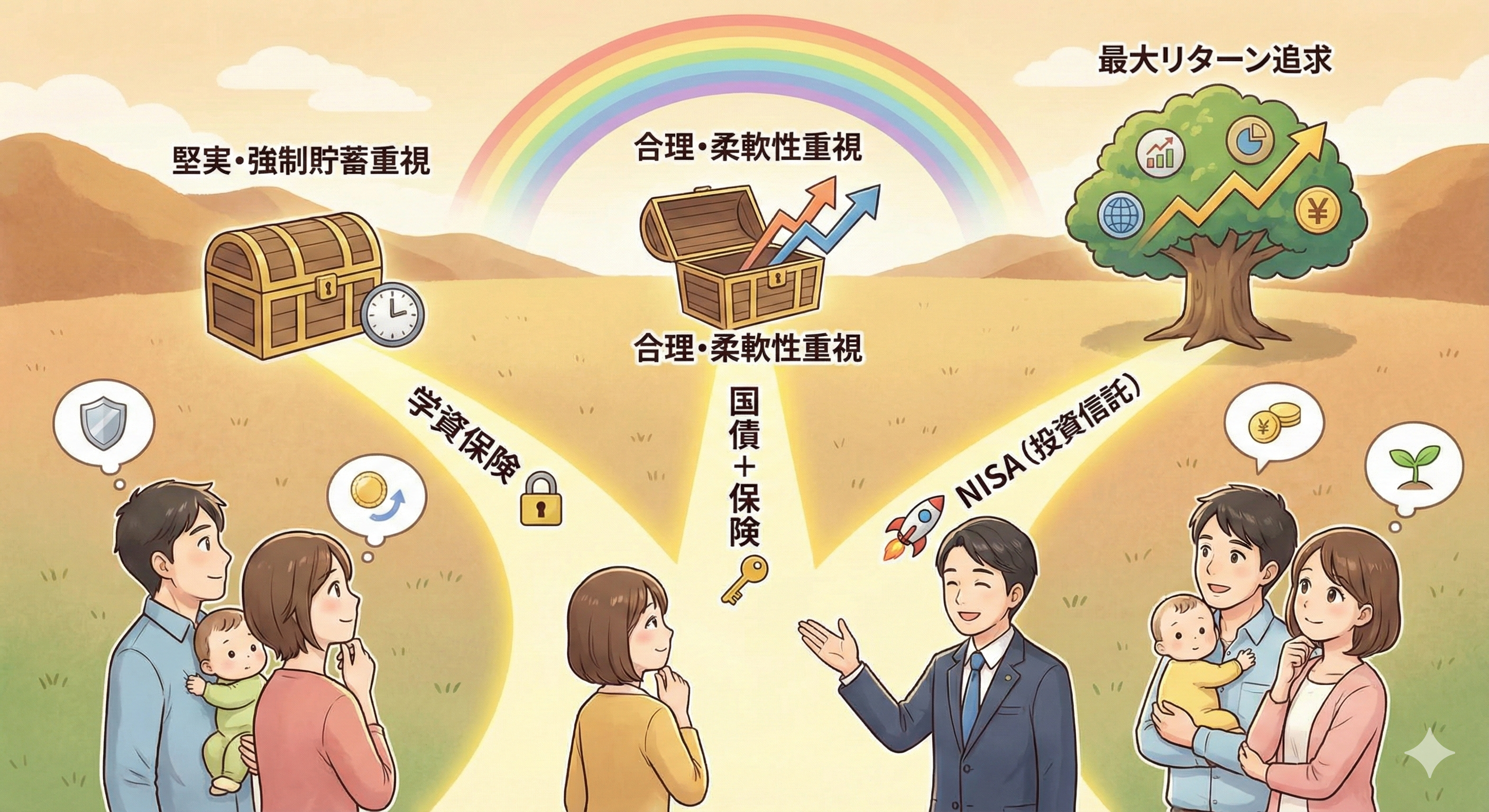 学資保険は、商品の仕組みを理解し、他の金融商品と比較することが重要です。 本記事では「掛け捨て保険+国債」という代替案とシミュレーションで比較し、 あなたの状況に合わせた最適な選択肢を提示します。